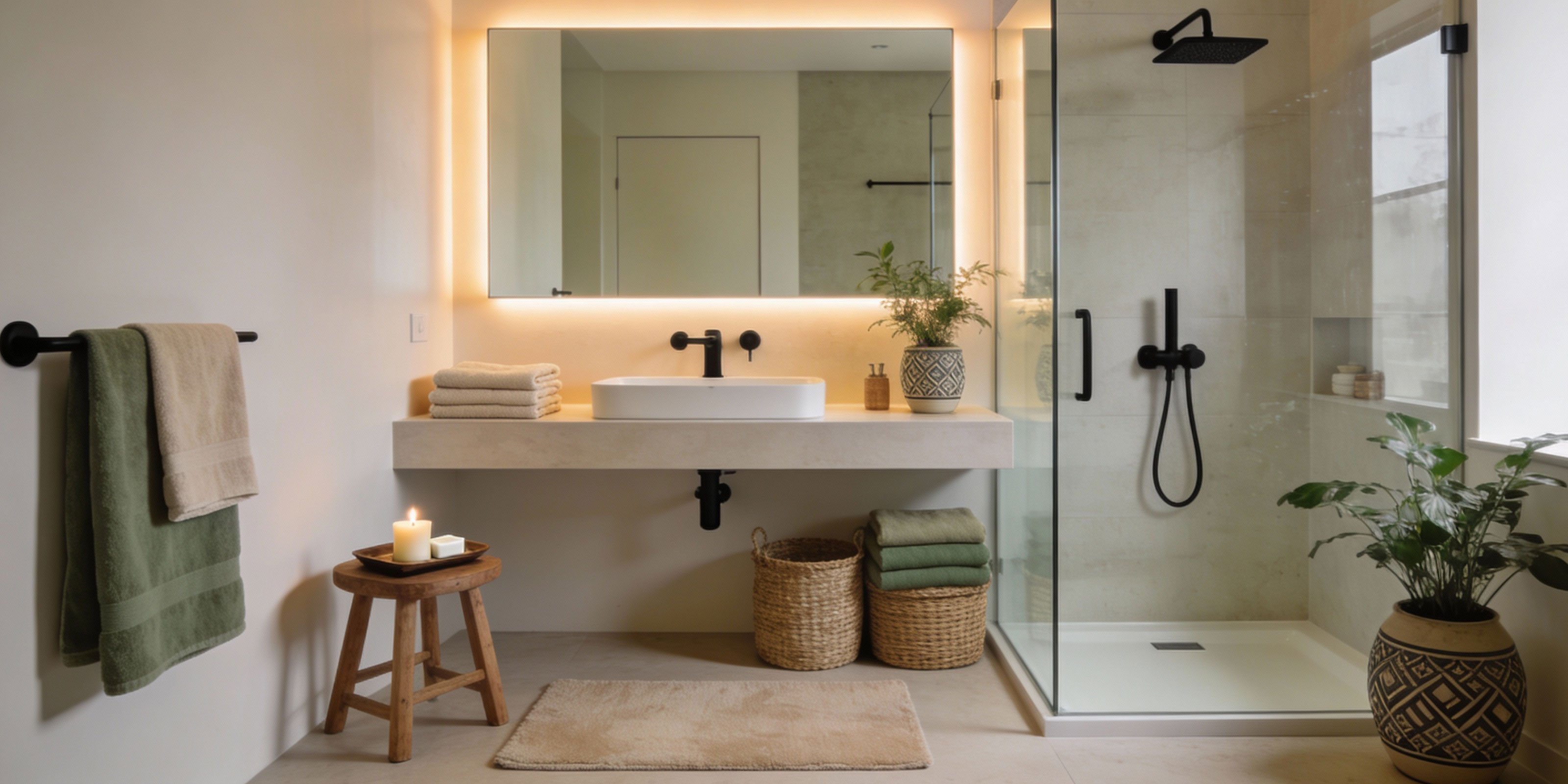 2026 wird das Bad mit warmen Accessoires, weichen Textilien, Naturmaterialien und stimmungsvollem Licht immer mehr zum wohnlichen Wohlfühlraum. Der Trend geht klar zum „Spa at Home“ mit Ordnungssystemen, dekorativer Aufbewahrung und harmonischen Farbakzenten