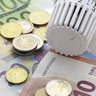 2. Ein Sparschwein das auf einem Heizkoerper steht und eine Hand Kleingeld in den Schlitz steckt
