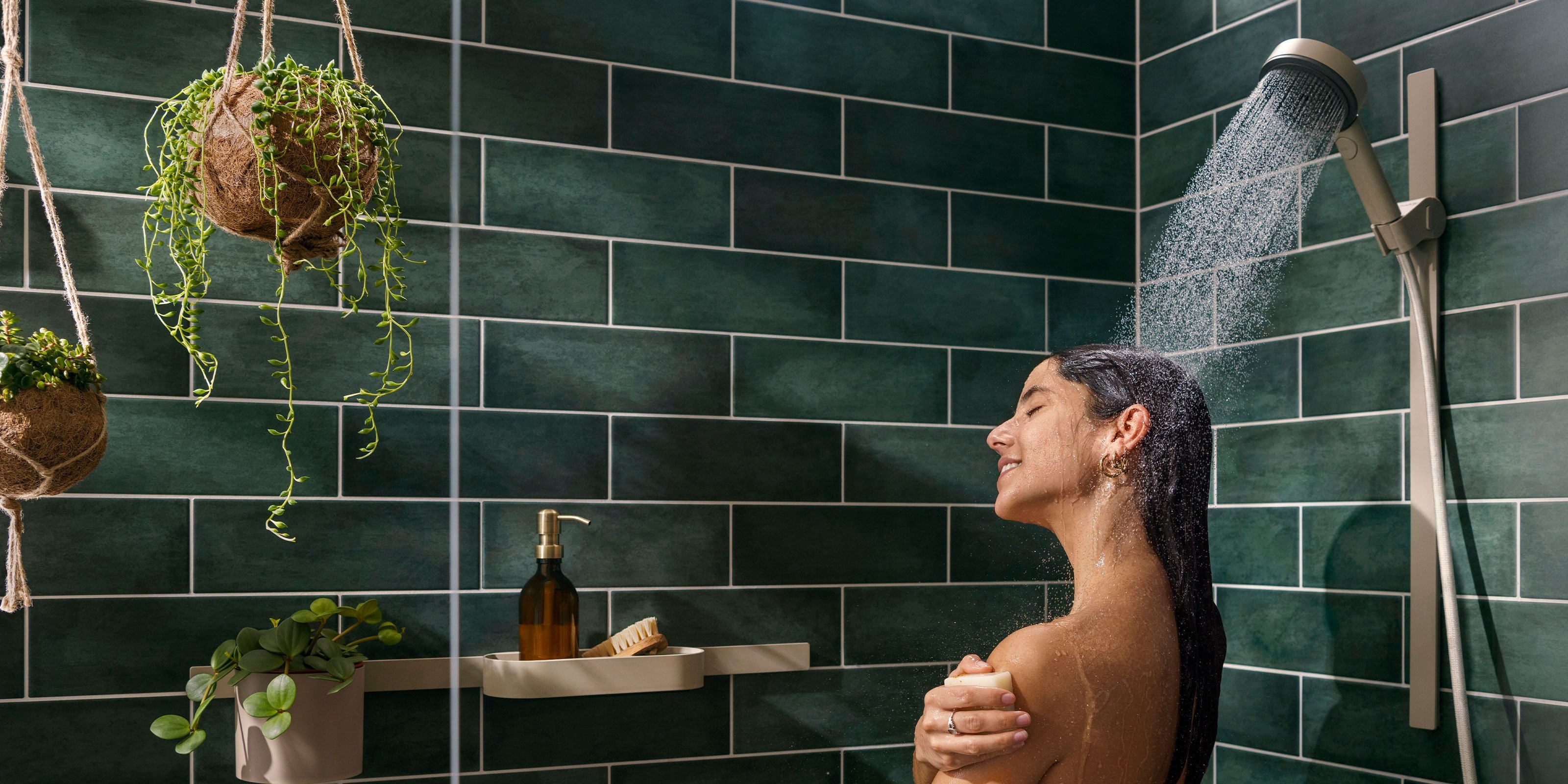 Hansgrohe's Green Vision Beyond Water. Dieses Konzept verspricht eine radikale Neuinterpretation des Badezimmers, die bis zu 90% weniger Wasser, Energie und CO2-Emissionen verbraucht.