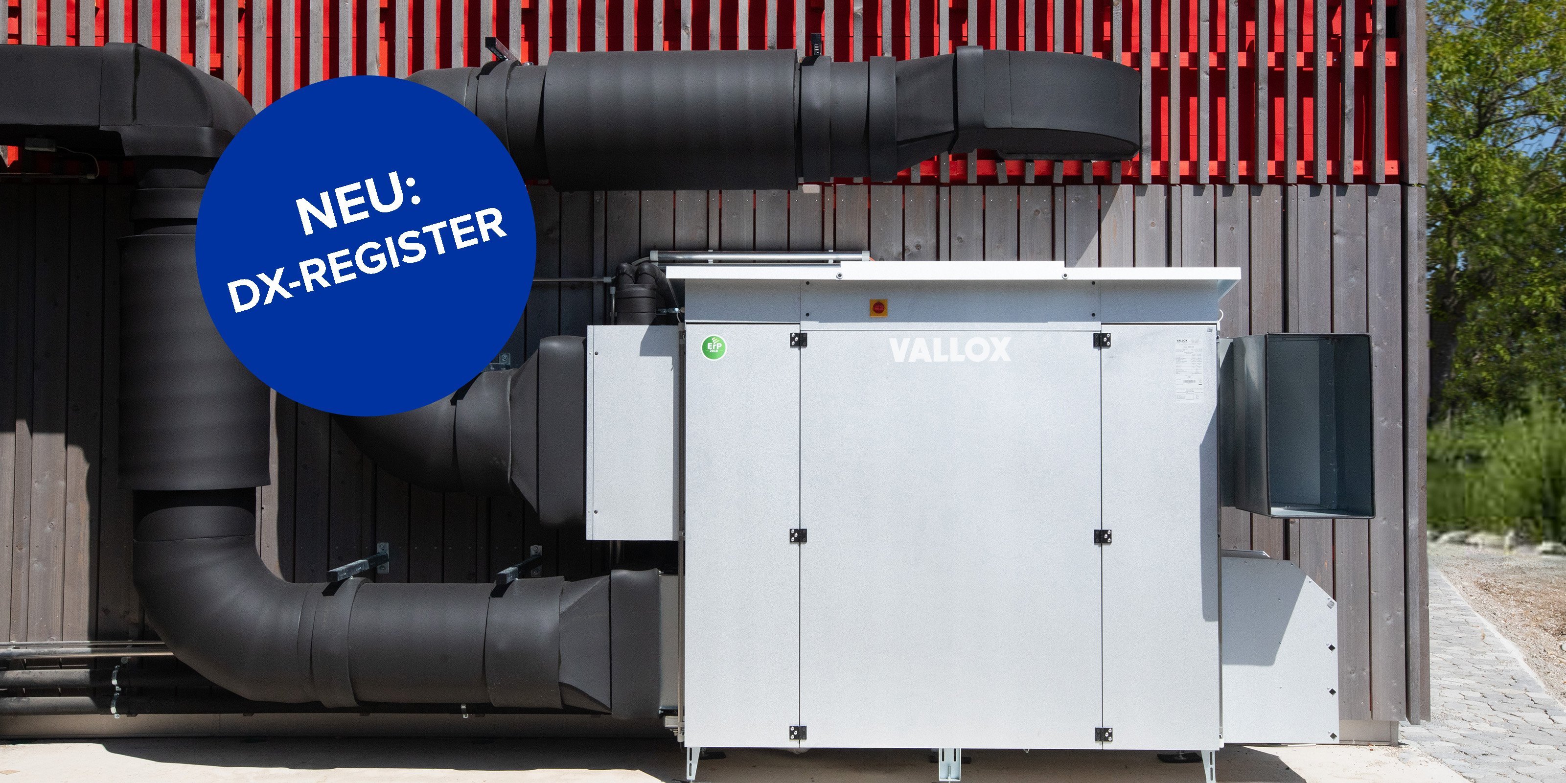 Mit dem neuen DX-Register von VALLOX lässt sich die Zuluft in zentralen Lüftungssystemen energieeffizient kühlen und erwärmen. Das Change-Over-Register sorgt für mehr Komfort, senkt Investitionskosten und lässt sich einfach in bestehende VARIO und VARIO V Geräte integrieren.